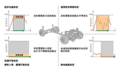 只要仔細(xì)看看廠商網(wǎng)站上四驅(qū)系統(tǒng)的扭矩輸出圖就不難看出了:在大多數(shù)高速行駛,或是倒車入庫、緩慢行駛的時候,途觀為了油耗考慮,后輪扭矩分配為零,就是作為一款前驅(qū)車而存在的,只有當(dāng)起步加速時,或是前輪打滑需要后輪驅(qū)動脫困時,才會分配扭矩給后輪,以獲得更好的加速性能或是道路通過性。這明明就是一套適時四驅(qū)結(jié)構(gòu),卻要扯上虎皮裝成“智能全時”!
