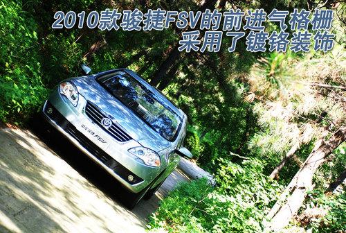 2010款駿捷FSV雖然是FRV延展出來的三廂產品,但整車的設計卻有了全新的改變,我們可以看到,駿捷FSV的尾部設計并沒有絲毫的牽強,與整車配合的非常到位。另外,2010款駿捷FSV的前臉造型與FRV也有很大不同,前進氣格柵采用鍍鉻裝飾條包圍,配合前機箱蓋的線條,顯得整車的前臉非常飽滿。
