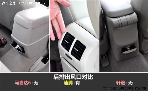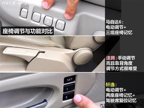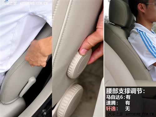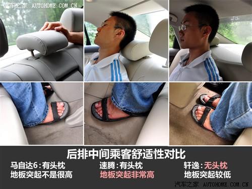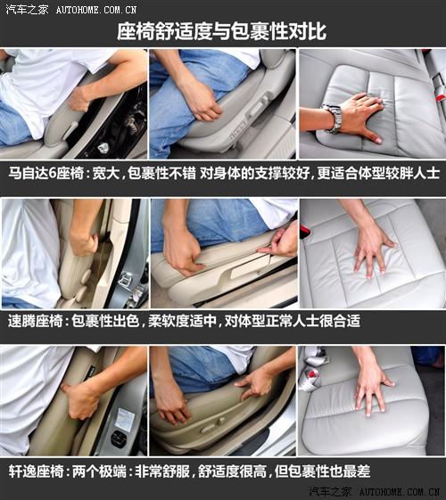 在這三款車中,中型車的馬自達6具有最寬大的座椅和三組座椅記憶,只是他的天窗面積實在有點;速騰的的配置影響了便利性,但卻是三款車中唯一有后排出風口的;軒逸的座椅就像家里的沙發(fā)一些,而且在開門的瞬間還可以自動后撤來方便上車,但幾乎沒什么包裹性可言,不利于高速行駛。