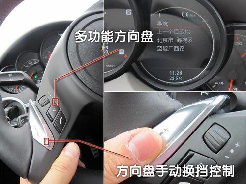 新卡宴的方向盤(pán)包含了很多功能,最為重要的是位于兩側(cè)拇指位置的換擋按鈕,向下推按鈕車(chē)輛會(huì)增加一個(gè)檔位向上抬起按鈕車(chē)輛會(huì)降低一個(gè)檔位,這對(duì)于喜歡體驗(yàn)風(fēng)馳電掣般駕駛感受的車(chē)主來(lái)說(shuō)一定是他們最為喜愛(ài)的配置了。