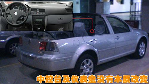 寶來皮卡與寶來經典版車型的不同之處,主要體現(xiàn)在第二排座椅和后備箱與貨箱的差異。而在內飾方面,寶來皮卡依然裝配寶來經典版車型的中控臺。寶來皮卡版車型可能是一汽大眾廠區(qū)內部用車,但也不排除批量生產的可能。