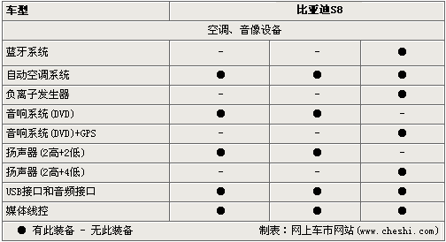 在空調(diào)、音像設(shè)備方面,S8配置了自動(dòng)空調(diào)系統(tǒng)、DVD娛樂系統(tǒng)及USB接口等,同時(shí)高配的豪華型擁有藍(lán)牙通信系統(tǒng)、GPS導(dǎo)航及負(fù)離子發(fā)生器等高端配置。 說了這么多,消費(fèi)者更關(guān)心的應(yīng)該是這款硬頂敞篷跑車的價(jià)格了,據(jù)內(nèi)部人士透露它的價(jià)格將在20萬元以內(nèi)。這樣的價(jià)格對(duì)于一款自主品牌的車似乎貴了一些,比亞迪是否會(huì)給我們帶來驚喜呢?讓我們拭目以待!