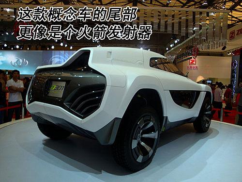 長(zhǎng)安E301概念車(chē)的尾部采用不規(guī)則狀設(shè)計(jì),左右兩側(cè)并沒(méi)有采用對(duì)稱(chēng)的設(shè)計(jì),而是采用凹凸的造型方式,看上去非常另類(lèi)。而且這款車(chē)的尾部整體設(shè)計(jì)也比較有特點(diǎn),很像是一個(gè)火箭發(fā)射器。
