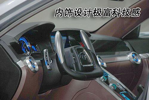 在內(nèi)飾方面,長城CHC011的方向盤采用極富未來科技?xì)庀⒌脑O(shè)計風(fēng)格,雖然看上去很拉風(fēng),但卻一點也不實用。另外,內(nèi)飾有很多地方都采用藍色背景光的設(shè)計,展示了整車在科技方面的造詣。