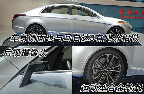 作為長城汽車的首款C級車,CHC011的前臉與新馬自達3非常相似,尤其是進氣格柵的造型。這款產(chǎn)品目前還是概念車型,大燈采用的是柳葉型設(shè)計,不知道量產(chǎn)后會不會有太大的變化。