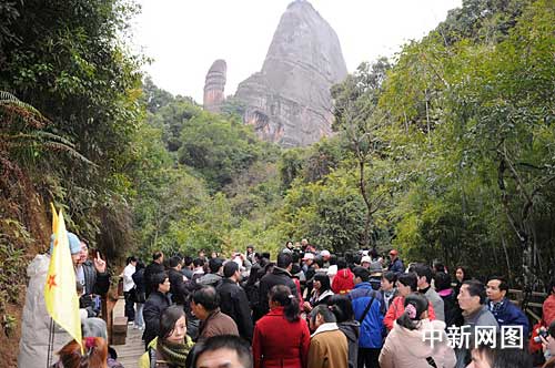 中新網(wǎng)韶關1月28日電(馮昶 劉加青 李正紅)今天是大年初三,廣東丹霞山景區(qū)內(nèi)游人如鯽,迎來了牛年春節(jié)旅游首個接待高峰。