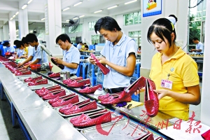 東莞一家制鞋廠的工人正在正常生產(chǎn)。