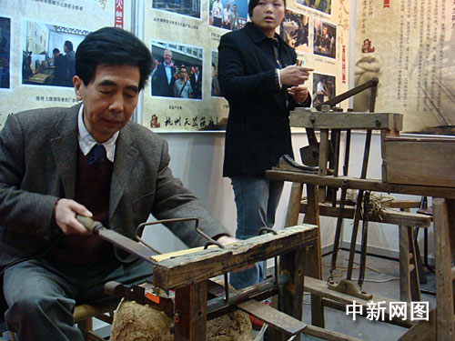 杭州一家主營筷子的企業(yè)正在現(xiàn)場展示傳統(tǒng)制筷工藝。姜越潮 攝