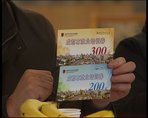 胡大全正在享受的是金堂縣以培訓(xùn)促進(jìn)就業(yè)的優(yōu)惠政策:免費(fèi)入讀由縣勞動(dòng)局開辦的培訓(xùn)班學(xué)習(xí)技術(shù),在金堂縣,承擔(dān)這項(xiàng)任務(wù)的有一個(gè)就業(yè)訓(xùn)練中心,兩所技術(shù)學(xué)校,以及像白果鎮(zhèn)制鞋培訓(xùn)班這樣的,深入到各鄉(xiāng)各村的流動(dòng)培訓(xùn)班,一旦有30人報(bào)名就可立即開班,從2008年9月至今,全縣已有2025名返鄉(xiāng)農(nóng)民工參加了培訓(xùn),基本上每個(gè)班結(jié)業(yè)時(shí),廠家都會直接到現(xiàn)場招人。