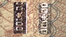 第四種偽造安全線是第二種和第三種的組合,既有燙印開(kāi)窗,又有實(shí)物安全線置于紙張夾層內(nèi)。(見(jiàn)下圖)