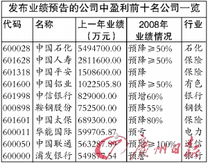 由于去年整體經(jīng)濟形勢的影響,上市公司業(yè)績普遍下滑已成不爭的事實。根據(jù)天相投顧最新統(tǒng)計,截至25日,滬深兩市共有1009家上市公司披露去年財務(wù)狀況,其中,在93家公布年報的公司中,除7家公司虧損外,其余86家公司去年均實現(xiàn)盈利,而且40家公司去年歸屬于母公司所有者的凈利潤實現(xiàn)增長。已披露年報公司2008年實現(xiàn)歸屬于母公司所有者的凈利潤合計143億元,較上年同期增長了15.6%。此外滬深兩市916家上市公司發(fā)布了2008年報業(yè)績預(yù)告,其中41%的公司為預(yù)增或預(yù)盈。