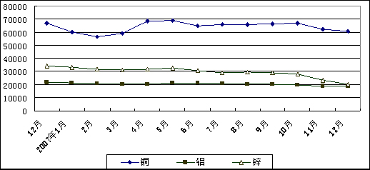 有色金屬價(jià)格持續(xù)下降。據(jù)對(duì)大中城市有色金屬現(xiàn)貨市場(chǎng)監(jiān)測(cè),繼前一個(gè)月下降7.26%后,07年12月份電解銅、鋁、鉛、鋅、錫、鎳六種有色金屬價(jià)格綜合指數(shù)環(huán)比繼續(xù)下降5.09%,六種有色金屬價(jià)格均有所下降,其中電解鉛、鋅、鎳價(jià)格降幅較大。
