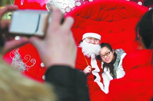 19:00,禮品店。單身男顧客猶豫不決,不知道該送什么圣誕禮物給女朋友;一旁店員小姐大力推薦一款紅色的毛絨牛玩具,標(biāo)價(jià)98元。小姐振振有詞地說:今年經(jīng)濟(jì)危機(jī),股市下跌搞得大家心情都不好,買什么禮物都不如買“紅!,既象征了明年的屬相,又有“牛氣沖天”的好口彩。記者發(fā)現(xiàn),近日來各種“!痹煨偷耐婢、工藝品在公司抽獎(jiǎng)、朋友送禮時(shí)都成了主角,看來西方的圣誕文化也要融合中國(guó)特色。