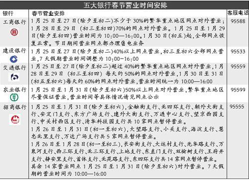 記者20日上午從工行、建行、招行等銀行獲悉,春節(jié)期間的網(wǎng)點營業(yè)安排已出爐。