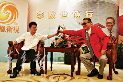 《李戡戡亂記》里有不少抨擊之語(yǔ),有人將李戡和大陸的韓寒相提并論。在昨天的采訪中,李敖讓兒子回應(yīng)此事,兒子有點(diǎn)緊張,只說(shuō)“大陸那么多人,不知為何總拿韓寒和自己相提并論”云云。李敖急了,接過(guò)麥克風(fēng)為兒子撐腰,“韓寒如果一輩子寫小說(shuō)、賽車,那都沒(méi)問(wèn)題。他如果想談一點(diǎn)時(shí)事,那顯然就缺乏深度。能和我談司馬光的《資治通鑒》嗎?沒(méi)看過(guò),人家根本就不會(huì)和你談。韓寒一進(jìn)入這個(gè)境界,就會(huì)出局。”李敖隨即又露出驕傲的神色:“韓寒比我兒子大10歲,這10年,我兒子會(huì)翻江倒海,去玩賽車,也未可知!