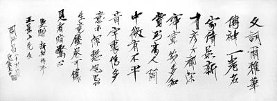 自謙不是書法家的周汝昌,幼少時即醉心歐楷筆法,20歲后又致力于唐人寫經(jīng),深研《蘭亭》后,得右軍真脈,遂平生作書多行草,其“橫逸飛動、筆筆不茍、使轉(zhuǎn)敷暢、作草如真”的周體法書,在眾多書家中以勢明法合意美之筆、英風(fēng)俊骨之墨神采煥然,只是受目力所限,70歲后便極少動墨了。這也是周汝昌書法作品存世稀少的原因。