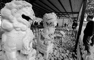 中山公園的蘭亭八柱和蘭亭碑、文津街老國(guó)圖的文源閣碑、中國(guó)對(duì)外友協(xié)院中的綺春園銅獅……三年前公布的“圓明園流散文物調(diào)查報(bào)告”統(tǒng)計(jì),圓明園文物散落在北京地區(qū)有近百件,包括碑碣、石雕、石刻、玉器、瓷器等,集中在十余處單位和民宅。
