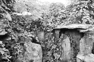 在“稱(chēng)巖松”石刻背后不遠(yuǎn),更深地“隱藏”著一塊四周雕有花紋的石匾,從資料分析,這當(dāng)是當(dāng)年流落至此的另一重要文物——澤蘭堂乾隆御筆“熙春洞”,但刻字卻已模糊到幾乎湮滅無(wú)蹤的地步。