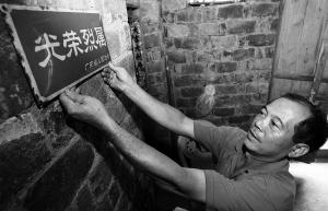 ?诃偵絽^(qū)龍寒村抗美援朝烈士吳業(yè)忠之子吳田川,展示政府頒發(fā)的光榮烈屬的牌匾。 海南日報(bào)記者 李英挺 攝