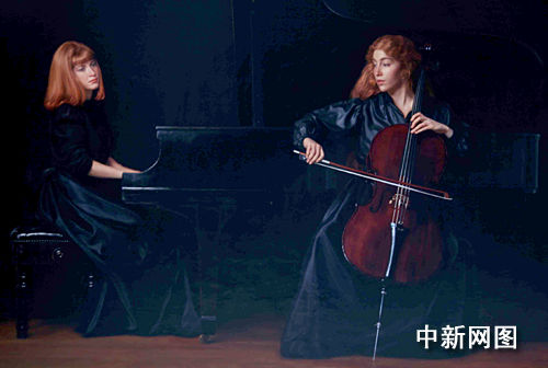 此間業(yè)內人士介紹說,《二重奏》創(chuàng)作于1988年,那年恰是紐約著名的哈默畫廊創(chuàng)立60周年。畫廊策劃了中國著名藝術家特別展作為重大紀念活動。陳逸飛與哈默畫廊合作的初期以創(chuàng)作“中國蘇州水鄉(xiāng)系列”為主,但這顯然這不能滿足他創(chuàng)作的欲望,他喜愛音樂,這一題材理所當然的成為首選。那年10月金秋陳逸飛個展揭幕,他將一批令人震撼的大幅人物肖像油畫新作展現給觀眾,轟動了當時美國藝術界。油畫《二重奏》就是其中最重要的作品之一,開展前即被西方石油公司總裁阿曼·哈默博士收藏。這一系列的作品已在他整個藝術生涯中留下了濃濃的一筆。