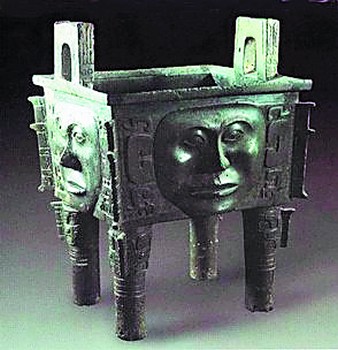 “大禾方鼎身上的人面像,我認(rèn)為是女性,可能是當(dāng)時(shí)的統(tǒng)治者形象。”在昨天下午省博物館向?qū)<彝瞥龅摹昂铣鐾辽讨芮嚆~器標(biāo)本展”上,劉森淼再一次近距離觀察了這尊大禾人面方鼎。“越看越像女人!”劉森淼興奮地說,“寬圓的臉龐,彎如新月的眉毛,豐厚而無胡須的嘴唇,可以表示其屬于女性;正視的雙目,兼存威嚴(yán)與祥和,寬厚的雙耳耳垂,有爪形墜飾,耳上的‘幾’形,則表示其頭上也有發(fā)飾或冠帶存在。它所表現(xiàn)的,是身份高貴的女人形象!眲⑸嫡J(rèn)為,這個(gè)“人面”,很有可能就是大禾方國信仰的神明或統(tǒng)治者形象。“把女人塑成神明,學(xué)術(shù)界一般公認(rèn)為與女權(quán)有關(guān)。也許,當(dāng)時(shí)大禾方國就是女權(quán)的天下,其統(tǒng)治者就是一個(gè)女人。”他進(jìn)一步解釋說,雖然到了商代,主要已是男性的天下,但這并不表示女權(quán)已經(jīng)絕跡!笆聦(shí)上,在我國南方某些地區(qū),女權(quán)其實(shí)延續(xù)到很晚,如云南納西族,直到20世紀(jì)中葉還有這方面的蹤跡!