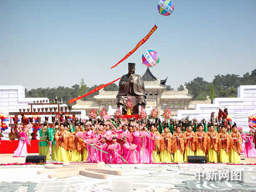 泰伯為吳地先祖,其“三讓天下”的高風(fēng)亮節(jié)和開發(fā)江南的豐功偉績,為吳地人民世代敬仰。今天在無錫新區(qū)鴻山鎮(zhèn)吳文化廣場的泰伯墓前,五大洲的吳氏至德宗親身佩黃絲帶,在鏗鏘悠揚的祭祀樂舞中,向開啟吳地三千年文明史的先祖敬獻花籃,虔誠祭拜,盛大的祭祀表演在春光明媚中盡情向海內(nèi)外賓客展示悠久燦爛的吳地文明以及無錫與世界“同根同源、同祖同宗”的文化自豪感。
