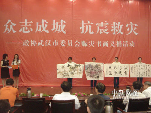 為此,武漢市政協23日貫徹中央抗震救災戰(zhàn)略部署,發(fā)揮人民政協的優(yōu)勢和特色,組織書畫藝術家、企業(yè)家進行書畫義捐、拍賣活動,全力援助災區(qū)生產自救和災后重建工作。