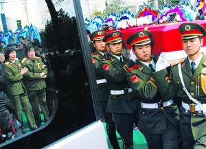 2007年4月2日,毛岸青追悼會(huì)結(jié)束后,被攙扶著的邵華目送靈柩離去。白繼開(kāi)攝