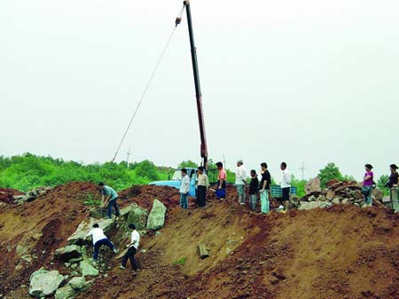 恐龍骨化石是6月23日在株洲市天元區(qū)蓮花小區(qū)二期工地發(fā)現(xiàn)的,當(dāng)時(shí)一塊重約3噸的石頭被炸開后,石頭呈骨狀。6月27日上午,株洲市文物局局長席道合帶領(lǐng)工作人員趕至工地調(diào)查,對(duì)怪石取樣鑒定,并將相關(guān)資料圖片送中科院古脊椎動(dòng)物研究所鑒定。
