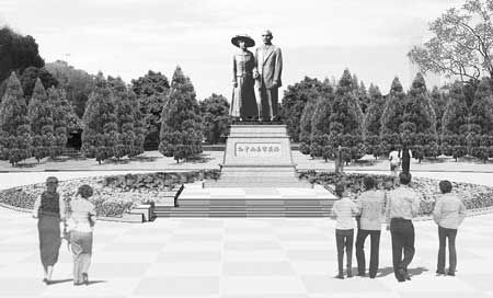 高7.6米、仿銅效果的孫中山、宋慶齡夫婦泥塑模型現(xiàn)身中山公園中區(qū)廣場
