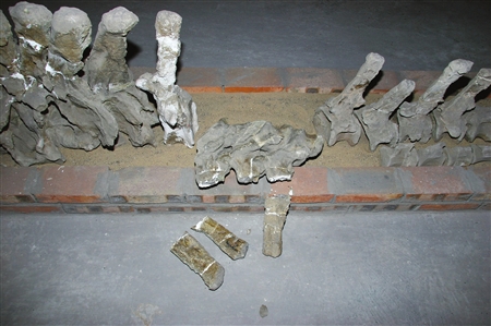 據(jù)恐龍博物館館長周遠(yuǎn)明介紹,地震發(fā)生后,館領(lǐng)導(dǎo)紛紛用電話通知館內(nèi)值班的保衛(wèi)人員加強(qiáng)戒備,在保障人身安全的前提下,加強(qiáng)巡邏全力保證國寶化石的安全。昨日上午,館內(nèi)組織專家對(duì)館藏化石的3個(gè)倉庫進(jìn)行清點(diǎn),除了3號(hào)倉庫的防盜門變形無法打開外,其余1、2號(hào)倉庫內(nèi)的珍貴化石大部分完好無損,和平永川龍、太白華陽龍等“鎮(zhèn)館之寶”均安然無恙;不過,有8件恐龍化石發(fā)生斷裂,其中,李氏蜀龍標(biāo)本尾追2、3、4號(hào)神經(jīng)棘與椎體斷裂;天府峨眉龍1號(hào)背椎神荊棘斷裂;鸚鵡嘴龍左掌骨脫落。