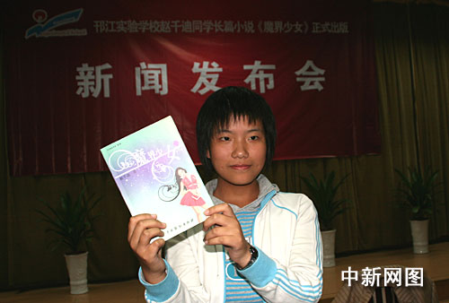 中新網揚州10月17日電(記者崔佳明)10月17日下午,江蘇省揚州市邗江實驗學校舉行新聞發(fā)布會,宣布該校初三學生趙千迪的十八萬字長篇小說《魔界少女》第一季終于于今年二月創(chuàng)作完成,并于八月份由中國戲劇出版社正式出版發(fā)行。揚州市作家協(xié)會主席正式宣布,吸收趙千迪入會,成為該市年齡最小的作家。