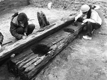 昨(3)日,在現(xiàn)場負責(zé)發(fā)掘的考古人員張擎帶領(lǐng)下,記者進入了考古現(xiàn)場,映入記者眼簾的是一些橫木和柱子。保存較為完整的一根柱礎(chǔ)底板長3.4米、寬0.45米、厚0.3米,其上有4個圓形柱洞,最高的一根立柱,高1.4米、最大直徑0.3米。這都是些什么呢?“這可是本次發(fā)掘的最大發(fā)現(xiàn),超長的豪華漢代廊橋!”張擎激動地說,“從木橋的結(jié)構(gòu)和古河道內(nèi)出土的遺物推測,這座木橋是漢代典型的建筑,結(jié)構(gòu)與2001年在金沙遺址蘭苑地點發(fā)現(xiàn)的漢代木橋完全相同,民間又叫它‘風(fēng)雨橋’!