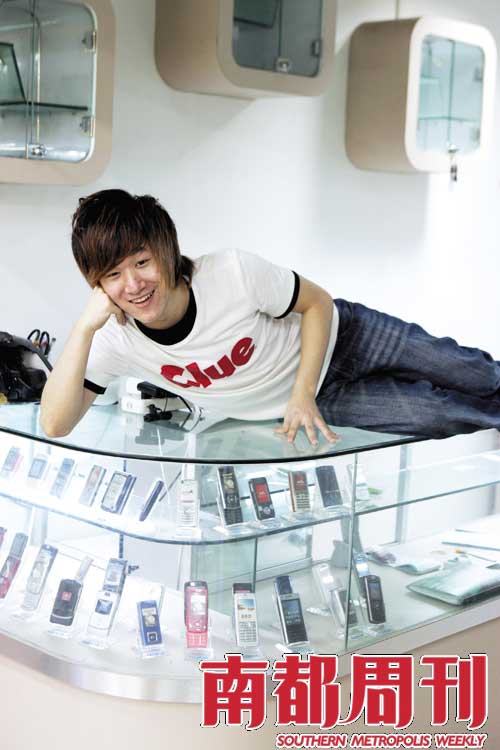 今年3月葉生開了網(wǎng)店,看到淘寶上不少賣家通過發(fā)帖紅起來,葉生也用手機拍攝了真人秀,從上往下的角度,瘦削的臉頰,金色的長發(fā),朋友看到后笑著大聲叫他帥哥,像極了“至上勵合”的明星劉洲成,于是,葉生就以“花樣美男”為題發(fā)表在論壇上,“發(fā)帖銷售效果一般般,但不少網(wǎng)友留言說我很帥。平時用照片耍?嵋矔脚,然后約她們出去玩。”盡管沒有在淘寶上紅起來,網(wǎng)店生意也馬馬虎虎,但能溝到女仔,葉生頗為得意。