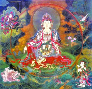 在題材上,法海寺壁畫突出體現(xiàn)了我國古代繪畫繼承傳統(tǒng)與時(shí)代創(chuàng)新的藝術(shù)特色。如佛教繪畫二十諸天《帝釋梵天圖》,是在唐代形成的一種佛教題材模式。法海寺壁畫中所繪制的二十諸天模式,完全保留了原來的密宗體系,具有典型的唐代傳統(tǒng),但是在繪法上,又具有明顯的時(shí)代風(fēng)格,創(chuàng)造和表現(xiàn)了明代人物的氣質(zhì)與內(nèi)涵,使人物與動(dòng)物塑造突破了僵硬的傳統(tǒng)表現(xiàn)模式。