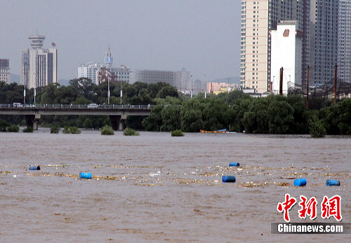 中新網(wǎng)吉林7月28日電 (許斯綺)7月28日,吉林省永吉縣境內(nèi)發(fā)生特大洪水,永吉縣經(jīng)濟(jì)開(kāi)發(fā)區(qū)新亞強(qiáng)化工廠一批裝有三甲基一氯硅烷的原料桶被沖入松花江中,事件發(fā)生后,吉林省迅速采取有力措施,在松花江沿途設(shè)置8道防線進(jìn)行攔截。吉化公司已派出200多人組成的專(zhuān)業(yè)搶險(xiǎn)隊(duì)伍協(xié)助當(dāng)?shù)卣驌啤?table border=0 cellspacing=0 cellpadding=0 align=left>