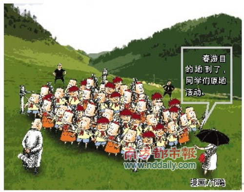 ●“不是說安全的原因,而是現(xiàn)在的春游根本就失去了教育的意義,完全就是個形式,不如不搞!奔议L孫先生認為,現(xiàn)在學校組織的所謂春游根本就對教育孩子、組織溝通沒什么幫助。