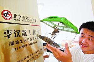 李漢歌從小學(xué)三年級開始研究蜘蛛的習(xí)性,有“蜘蛛王”的稱號,曾三次代表北京市參加全國青少年科技創(chuàng)新大賽并兩次榮獲一等獎。為了給優(yōu)秀的學(xué)生提供良好的環(huán)境,二中破例為他單獨(dú)設(shè)立個(gè)人實(shí)驗(yàn)室。