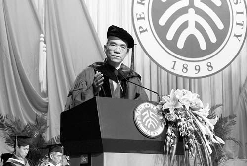 在畢業(yè)典禮那天,在奧運會的乒乓球館中,那些四年前和我一起踏進這所校園的同學們,都穿上了學士服坐在一起。當林毅夫教授說:“只要民族沒有復興,我們的責任就沒有完成,只要天下還有貧窮的人,就是我們自己在貧窮中,只要天下還有苦難的人,就是我們自己在苦難中,這是我們北大人的胸懷,也是我們北大人的莊嚴承諾!比珗霰l(fā)出了雷鳴般的掌聲。我分明感受到自己已經熱血沸騰。