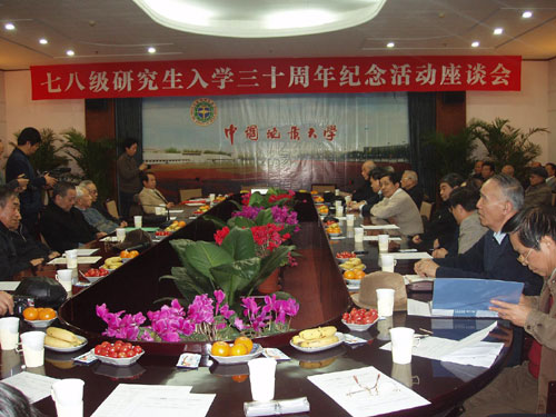 在12月6日和12月8日分別于武漢和北京舉行的兩個(gè)座談會(huì)上, 回到地質(zhì)大學(xué)母校的1978級(jí)研究生董振興,鄢泰寧, 楊昌明, 金鳴峰,韓紹緒, 岑況等著名教授和學(xué)者與此地大的一些著名老教授紛紛發(fā)言, 表達(dá)自己對(duì)鄧小平親筆批示的敬佩之情。表達(dá)自己對(duì)文革后中國(guó)研究生教育發(fā)展30年來蓬勃發(fā)展的充分肯定。(勞荊 / 地京 / 地漢)