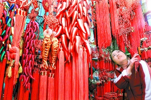 一女大學(xué)生在為家人選購(gòu)新年禮物