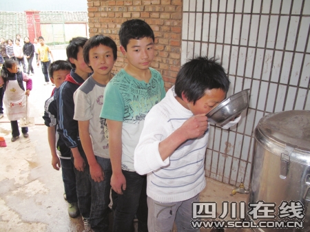 “同學們,現(xiàn)在是集中供水時間,請大家排好隊到供水點喝水。”24日下午2時,橫江鎮(zhèn)西林村堰村小學,校長官文權敲響了清脆的鐵鐘,孩子們從各班級教室里蜂擁而出,跑向操場邊的開水爐旁排隊。