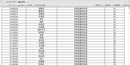 真的和去年一樣嗎?記者今天上午在浙江教育考試網(wǎng)查閱了該省2008年普通高校招生政策加分考生名單公示公告,緊挨其下還有一份“浙江省2008年獲得國(guó)家二級(jí)運(yùn)動(dòng)員(含)以上稱號(hào)測(cè)試認(rèn)定合格名單公示”。