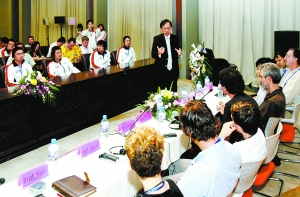 右上圖 姚期智教授在主持講授團(tuán)專家與大學(xué)生座談 郭海軍攝
