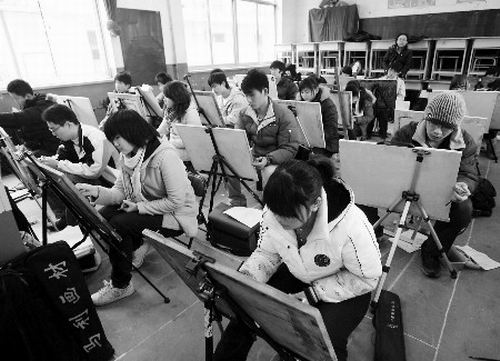 28日,山東省首次美術(shù)統(tǒng)考在全省17個(gè)市進(jìn)行,濟(jì)南市設(shè)兩個(gè)考點(diǎn)。(王振國(guó))
