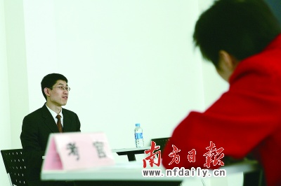 記者在現(xiàn)場看到,不少警校出來的考生都身穿警服來面試,這群“準警察”在西裝革履的考生群中尤為醒目,但他們在進入考場上交手機等通訊工具時,隨即被要求把警號摘下,以免在面試過程中透露個人信息,影響考試的公平性。“原本希望在面試中贏取一些形象分和同行分,但效果并不大。”一名考生對記者說。參與面試的7名考官中,只有兩名是來自公安系統(tǒng)的同行,其余5名皆是來自其他行局的考官。