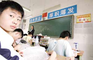 在高三(2)班的黑板邊,還掛著一個倒數(shù)牌,上面寫著離高考還有26天。這個日歷牌顯示的是5月12日的日期,從那天撤離教室,孩子們昨天回到教室后,沒有人愿意將這個日歷牌換掉,也許這個傷痛在每個人心里,都沒有人愿意去觸及。班主任紀(jì)曉燕說,她班里有一個安縣的學(xué)生,母親在那天就被廣告牌砸死了。父親打電話通知他時,他一天沒說話。到現(xiàn)在,這孩子也沒掉過一滴眼淚,每天就是在狠狠地溫習(xí),也許這樣的方式能使他暫時麻醉,高考壓力使他暫時忘掉了悲傷。這是一種心理上的自我催眠,但是老師擔(dān)心,一旦考完試,巨大的悲傷就會瞬間擊垮他。