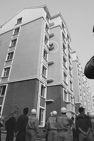 當(dāng)日15時(shí)許,記者接到市民報(bào)料后趕到事發(fā)現(xiàn)場時(shí)看到,一輛消防車停在樓下,數(shù)百市民仰頭向上圍觀,110民警、陽光派出所民警在現(xiàn)場維持秩序,四平市公安局和消防支隊(duì)有關(guān)領(lǐng)導(dǎo)正在研究和布置施救措施,小區(qū)居民從家里拿來棉被,同小區(qū)保安一起自發(fā)地拉撐起來,四平市消防支隊(duì)特勤中隊(duì)指導(dǎo)員王軍勇組織消防人員鋪好安全氣墊,準(zhǔn)備意外發(fā)生后展開救援工作。