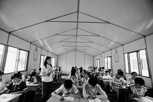 昨天一大早,14歲的王柱良背著書包重新回到了崇州何家中學(xué)的課堂。與其他重災(zāi)區(qū)的受損學(xué)校不同,這所抗震中學(xué)用的不是帳篷,而是花了一天時間搭建起來的彩鋼復(fù)合夾心板房子。