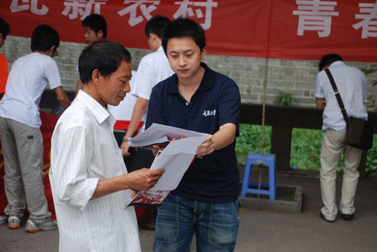 7月14日上午,適逢長沙鎮(zhèn)趕集,開縣團(tuán)縣委聯(lián)合重慶工程職業(yè)技術(shù)學(xué)院大學(xué)生暑期三下鄉(xiāng)社會實(shí)踐團(tuán)在長沙鎮(zhèn)開展改革開放三十年成就宣講服務(wù)活動。當(dāng)日上午,三十名宣講成員冒著酷暑向過往群眾宣講,宣講活動按思想建設(shè)、國防科技、百年奧運(yùn)、民主法制、社會民生等10個(gè)部分圖文資料生動地展現(xiàn)了祖國改革開放三十年取得的巨大成就。駐足觀看的群眾絡(luò)繹不絕,在展覽前打起了傭堂,他們有的深情凝望圖片資料,有的和大學(xué)生攀談改革開放三十年來自己生活的變遷。